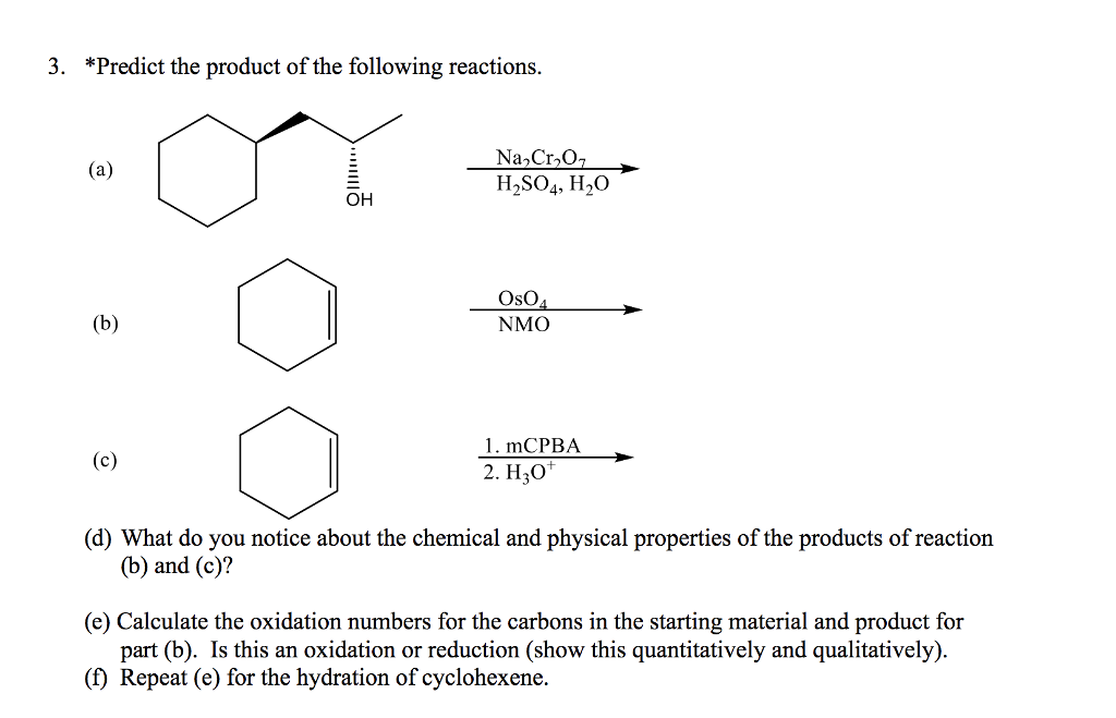 Mcpbacl2, H2Obr2, H2Oh3O+, Hoch31.Bh3.Thf 2.H2O2, Naohh2, Pt1.Hg (Oac)2, H2O 2.Nabh4Hbrhihcloso4, H2O2H3O+1.Mcpba 2.H3O+Hbr, Roor, Heatbr2Warm, Concentrated Kmno41.O3 2.