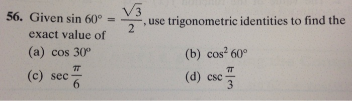Exact Value Of Sec 30. Click here π to get an answer to your question ️ the value of sec 30 degree = brainly user brainly user 27.07.2020 math secondary school answered. So go for zero than 30 degrees and you know, for 45 please, i was sold out in duties on your bikes.