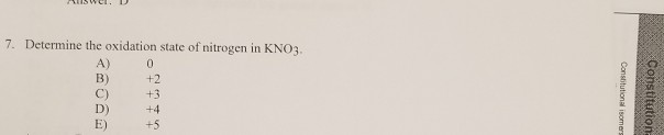 Our videos prepare you to succeed in your college classes. Free expert solution show answer What is the oxidation state of an individual nitrogen atom in kno3?
